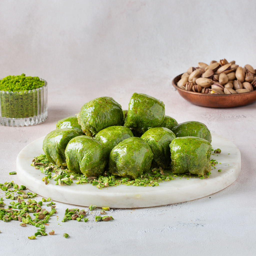 Şef Baklavaları Fıstıklı Bomba, adını hak eden dolu dolu bir lezzet deneyimi sunar. İncecik açılmış yufkaların arasına bolca Antep fıstığı eklenerek ustalıkla hazırlanır. Her lokmada çıtır yufkanın altında gizlenen taze fıstık aroması, tatlı severler için unutulmaz bir deneyim yaratır. Dışı altın sarısı bir parlaklığa sahipken, içi fıstıkla dolu yapısıyla görsel ve lezzet açısından tam bir şölen sunar.